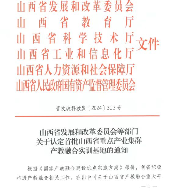城市轨道交通产教融合实训基地入选首批山西省重点产业集群产教融合实训基地